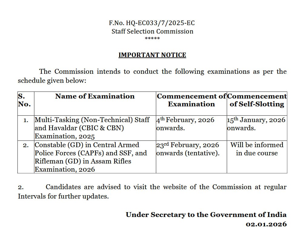 🚨 SSC GD Constable Exam 2026 (Official Notice)